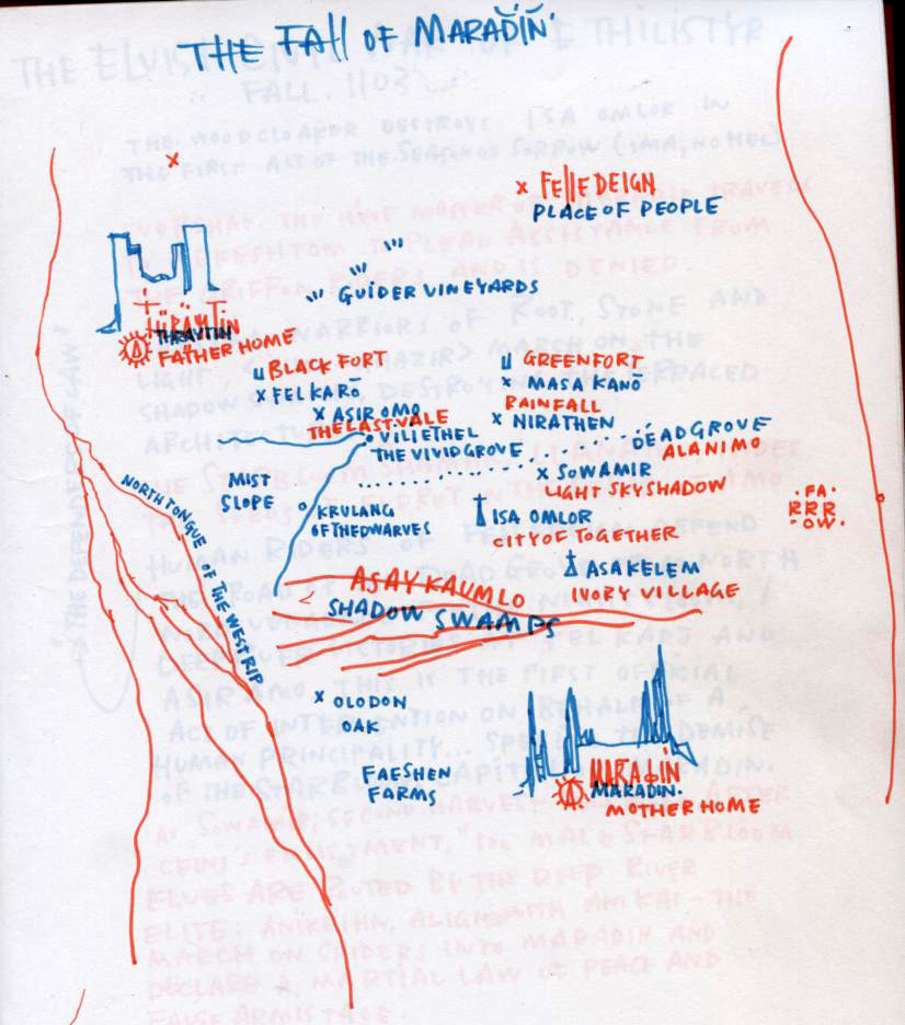 Posted in The Shadow Road on April 4, 2010 by coyoteandthunderNorth County was a community greatly altered by the opening of the Shadowroad. A gnarled, twisted wild land where dead end fairy trails gleem and faun wights dance. It was here that Arythial Bessallyn would steal away down secret roads that only little girls can find… for long trips as a little girl she would leave Maiah, and it was for this that Tim Tigean sent her as an adult to investigate the goings on of the Red Fist…
