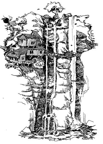Needle Falls is the Current retreat for Tim Tigean, the Sherriff of Gavin Wel. Its location is secluded enough to afford Tim some peace but central enough so that he may jet out to any locale should the need arise. The Ancient Copper dragon Morgholt, an old resident of the Needle Falls Valley, has become a trusted ally of Tim.